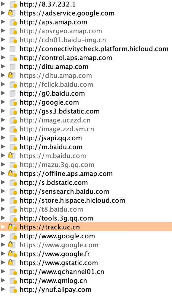 這部華為手機發信息給以下所有的網站。在第一次觀察,所有的信息都沒有加密。